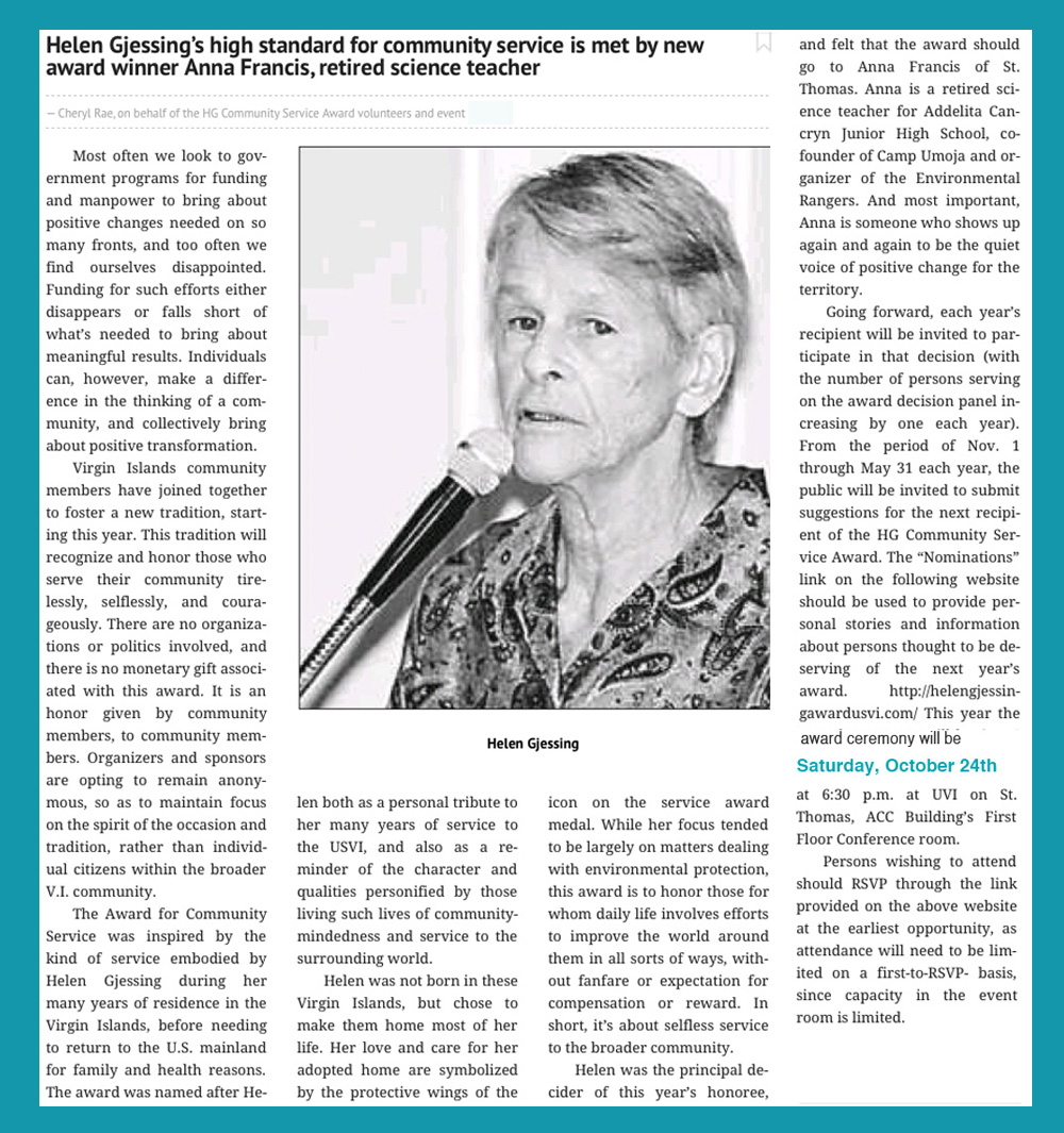 Virgin Islands community members have joined together to foster a new tradition, starting this year. This tradition will recognize and honor those who serve their community tirelessly selflessly, and courageously. Cherly Rae, on behalf of the HG Community Service Award volunteers and event